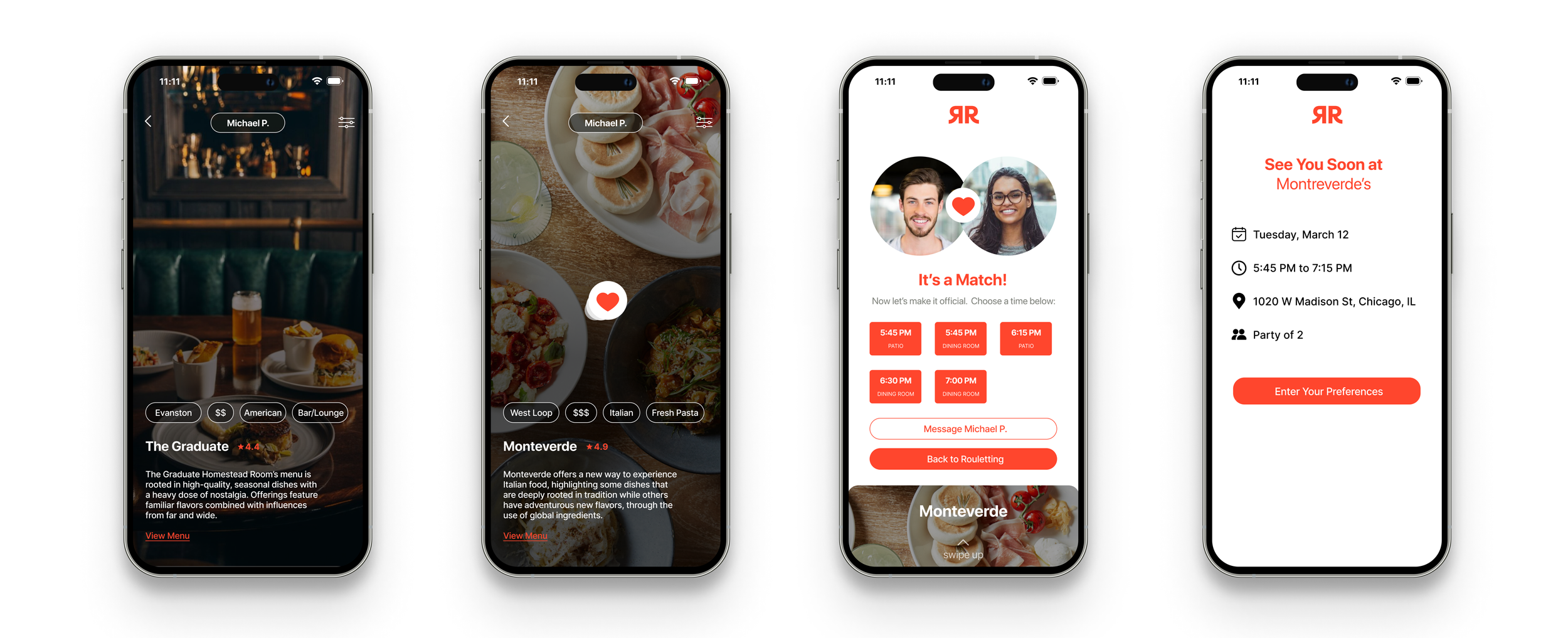 The user experience mirrors that of popular dating app. Users can express interest in a restaurant by double-clicking, swipe right if they like the restaurant but prefer not to go immediately, and swipe left if the option doesn't appeal to them. Upon a successful match, the primary user can seamlessly choose a reservation time on a pop-up page that stays consistent to the rest of Resy’s user experience.